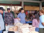Rombongan yang terdiri dari unsur Forum Koordinasi Pimpinan Daerah (Forkopimda) Kabupaten Kepulauan Sangihe turut melakukan pemantauan langsung terhadap harga sejumlah komoditas penting di lapak para pedagang.