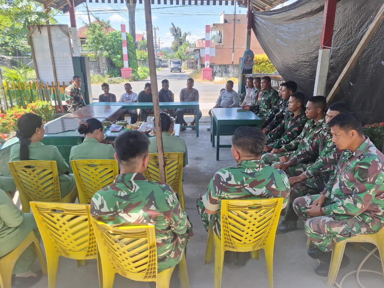 Amurang, GN – Giat pemberian nutrisi dan makanan tambahan kepada anggota Yon Tap 916/Bara Sakti beserta para pekerja Koperasi Desa/Kelurahan Merah Putih (KDKMP) Desa Rumoong Bawah dilaksanakan di Makoramil 1302-14/Amurang Kelurahan Ranoyapo Kec. Amurang Kabupaten Minahasa Selatan yang dipimpin langsung oleh Danramil 1302-14/Amurang Kapten Infanteri Jantje M. Wulur, pada Kamis,(16/04/2026).