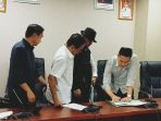 Di ruangan serba guna DPRD Sulut, perwakilan masa aksi damai di terima oleh Wakil Ketua DPRD Sulut Royke Anter, Ketua Komisi 3 Berty Kapojos, Ketua Fraksi Nasdem Nick A Lomban, anggota fraksi Nasdem Paula Runtuwene dan Sekretaris DPRD Sulut Wiliam Niklas Silangen.